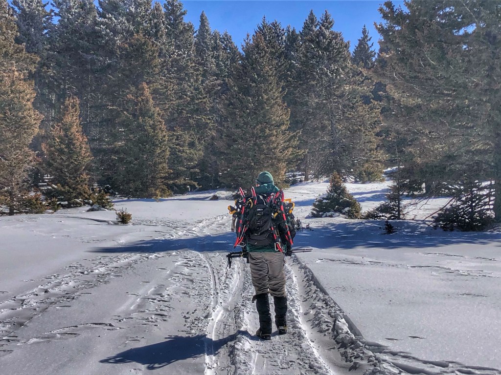 Here’s the thing. I haven’t crossed frozen earth or traversed deep snow in a decade. I remembered cold’s bite but forgot the challenge of walking on numb feet over uneven, refrozen ice. With many miles remaining, I acknowledged how grueling it is to break trail in snowshoes. Even downhill is a struggle. You don’t just read the time or count the miles out here—you feel them. That’s how it works.